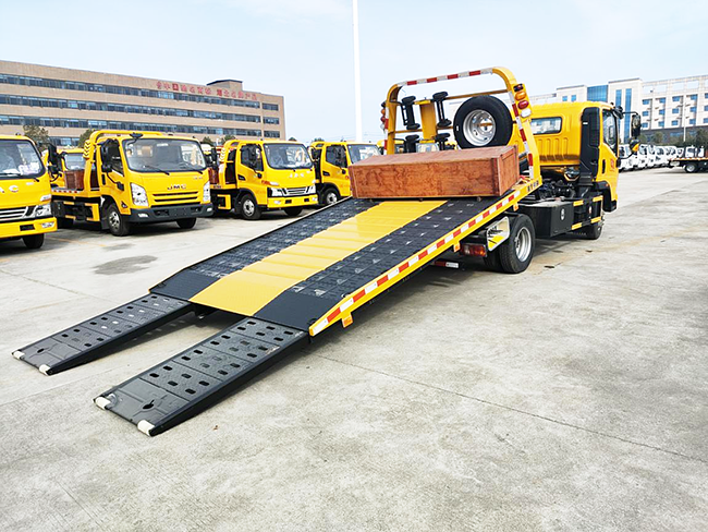 5、清障車是在專用底盤基礎上裝配托舉、拖拽、起重等裝置,對車輛進行清障拖牽、背載運輸等作業;